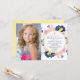 Navy blue blush pink floral first communion photo invitation