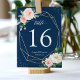 Navy Blue Blush Pink Floral Gold Frame Wedding Table Number