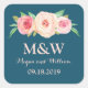 Navy Blue Blush Pink Floral Monogram Wedding Square Sticker