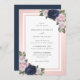 Navy Blue Blush Pink Floral Wedding Invitation