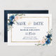 Navy Blue Blush Pink Geometric Save the date card