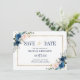 Beautiful floral boho modern geometric wedding save the date card features hand-painted watercolor floral graphics / roses in rich tones of navy blue and blush pink with gold frame. Please contact me for any help in customisation or if you need any other product with this design.