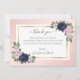 Navy Blue Blush Pink Gold Floral Thank You Card