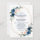 Navy Blue Blush Pink Rose Boho Geometric Wedding Invitation