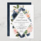 Navy Blue Blush Pink Rose Boho Geometric Wedding Invitation