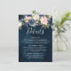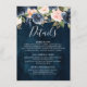 Navy Blue Blush Pink Rose Boho Wedding Details Enclosure Card