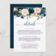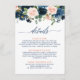Navy Blue Blush Pink Rose Boho Wedding Details Enclosure Card