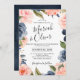 Navy Blue Blush Pink Rose Boho Wedding Invitation