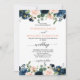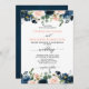 Navy Blue Blush Pink Rose Boho Wedding Invitation