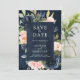 Navy Blue Blush Pink Rose Boho Wedding Save The Date