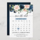 Navy Blue Blush Pink Rose Botanical Save the Date