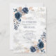 Navy Blue Blush PInk Rose Marble Floral Wedding Invitation