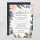 Navy Blue Blush Pink Rose Virtual Bridal Shower Invitation