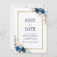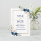 Beautiful floral boho modern geometric wedding save the date card features hand-painted watercolor floral graphics / roses in rich tones of navy blue and blush pink with gold frame. Please contact me for any help in customisation or if you need any other product with this design.