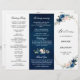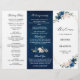 Elegant and modern floral midsummer wedding tri fold program features a bouquet of watercolor roses in shades of Navy Blue, dusty pink , sage with lush green botanical leaves and eucalyptus. Please find more matching designs and variations from my "blissweddingpaperie" store. And feel free to contact me for further customisation or matching items.
