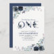 Navy Blue Boho Floral Boy 1st Birthday Party Invitation