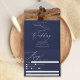 Navy blue boho photo chic calligraphy wedding all in one invitation
