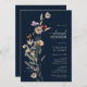 Navy Blue Boho Rehearsal Dinner Invitation. Set the tone for your wedding weekend with our Rehearsal Dinner Invitation, featuring a rich navy blue background and elegant ivory script paired with minimalist serif details. Soft watercolor florals in tones of cream, beige, muted blush, and dusty rose peek along the edges, creating a subtle yet striking contrast that perfectly suits a moody, romantic Navy Blue wedding aesthetic. Personalise every element—from wording to font styles and sizes—to match the mood of your evening. It’s a seamless start to your wedding events—refined, modern, and effortlessly stylish.