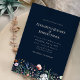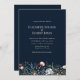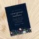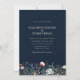 Set the tone for your big day with this beautiful Navy Blue Boho Wildflower Wedding Invitation. Against a navy blue backdrop, colourful wildflowers are arranged in a charming meadow-like fashion, evoking the beauty of nature and the freedom of the great outdoors. The modern boho font perfectly complements the whimsical design, making this invitation the perfect choice for any trendy and romantic couple.