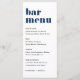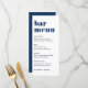 Add these customisable bar menu card stationery to your event tablescape. They feature bold retro typography and simple green and black typography. This navy blue bar menu card is perfect for weddings, bridal showers, baby showers, and so much more.