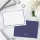 Add a personal touch to your stationery with this clean and modern note card. The front features a white background with a classic double border in navy blue and has space to display your full name in a timeless serif font. The design is simple but polished, offering a versatile look that works for any occasion. On the back, a white initial monogram adds a subtle detail against the solid navy blue background for a sleek contrast.