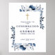 This modern elegant navy blue floral confirmation welcome sign can be personalised with your information in modern typography. Designed by Thisisnotme©