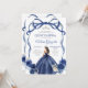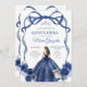 Navy Blue Bow Princess Silver Crown Quinceañera Invitation