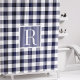 Navy Blue Buffalo Check Monogram Shower Curtain