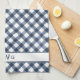 Navy Blue Buffalo Plaid Three Initial Monogram Tea Towel