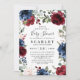 Navy Blue Burgundy Blush Pink Floral Baby Shower Invitation