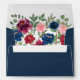 Navy Blue Burgundy Blush Pink Marsala Fall Wedding Envelopes - feature an interior design of beautiful watercolor floral elements in shades of navy blue, burgundy, blush pink, and more over greenery (eucalyptus) etc. This product is bohemian or elegant themed and perfect for any seasonal wedding -- spring, summer, fall or even winter. View the matching collection on this page to match the entire wedding set (suite). The exterior features a watercolor wash in navy blue colour. You will need to purchase a white, gold or silver paint pen online or at your local big box store to hand write guest names on the exterior dark blue colour.
