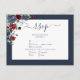 Navy Blue Burgundy Botanical Script Wedding RSVP Invitation Postcard