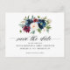 Navy Blue Burgundy Floral Wedding Save the Date Announcement Postcard