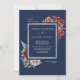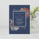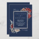 Navy Blue Burgundy Red Rose Botanical Wedding Invitation