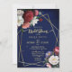 Burgundy roses greenery navy blue background gold geometrical frame floral bridal shower invitation template.