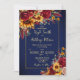Navy blue burgundy roses sunflowers wedding invite