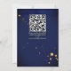 Burgundy roses greenery navy blue background gold geometrical frame floral wedding invitation template with QR RSVP code at the back.