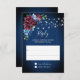 Navy Blue Burgundy String Lights Floral Wedding RSVP Card