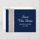 Navy Blue Burlap Lace Wedding Save The Date Postcard