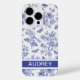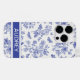 Navy Blue Butterfly Toile iPhone 14 Pro Case