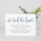 We tied the knot! Announce your marriage to family and friends with this simple and elegant wedding announcement. It features navy blue whimsical calligraphy with classic typography. Personalise by adding names, date, address and other details. This script wedding invitation is perfect for any wedding season and theme.