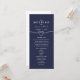 Modern, minimalist, elegant, simple calligraphy navy blue wedding program with silver rope heart.
