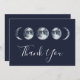 Beautiful Celestial Moon Phases in navy blue watercolor, thank you cards. Card features, navy blue colour background and white text template lines for your greeting, message on back and name(s).