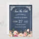Personalise this "Navy Blue Chalkboard Pink Floral Save the Date Card" to announce your wedding date to family and friends! You can easily customise it to match your wedding colours, styles and theme.