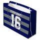 Navy Blue Charcoal Team Jersey Preppy Stripe Large Gift Bag
