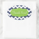 Navy blue and white chevron with green label. Monogram with your initials or personalise it with your name!