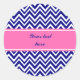 Navy Blue Chevron Pattern with Hot Pink Classic Round Sticker