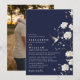 Navy Blue Chinoiserie Floral Garden Wedding Photo Invitation