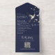 Navy Blue Chinoiserie Floral QR Code Wedding All In One Invitation