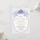 The typography combines elegant, flowing script for the names and headings with classic serif text for the details, all in coordinating hues of soft blue and beige. The layout feels airy and refined, perfect for a fall bridal shower that embraces timeless charm with a modern vintage twist.
